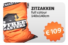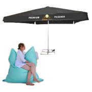 Met onze druktechnieken produceren wij ook horeca parasols, pop-up tenten, zitzakken, poefjes, hockers en kussens.